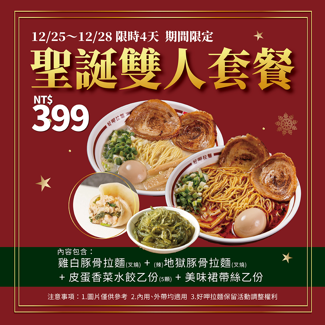 聖誕節佳節 快樂!!!! 期間限定 聖誕雙人套餐即將於12/25 - 12/28 限時4天販售